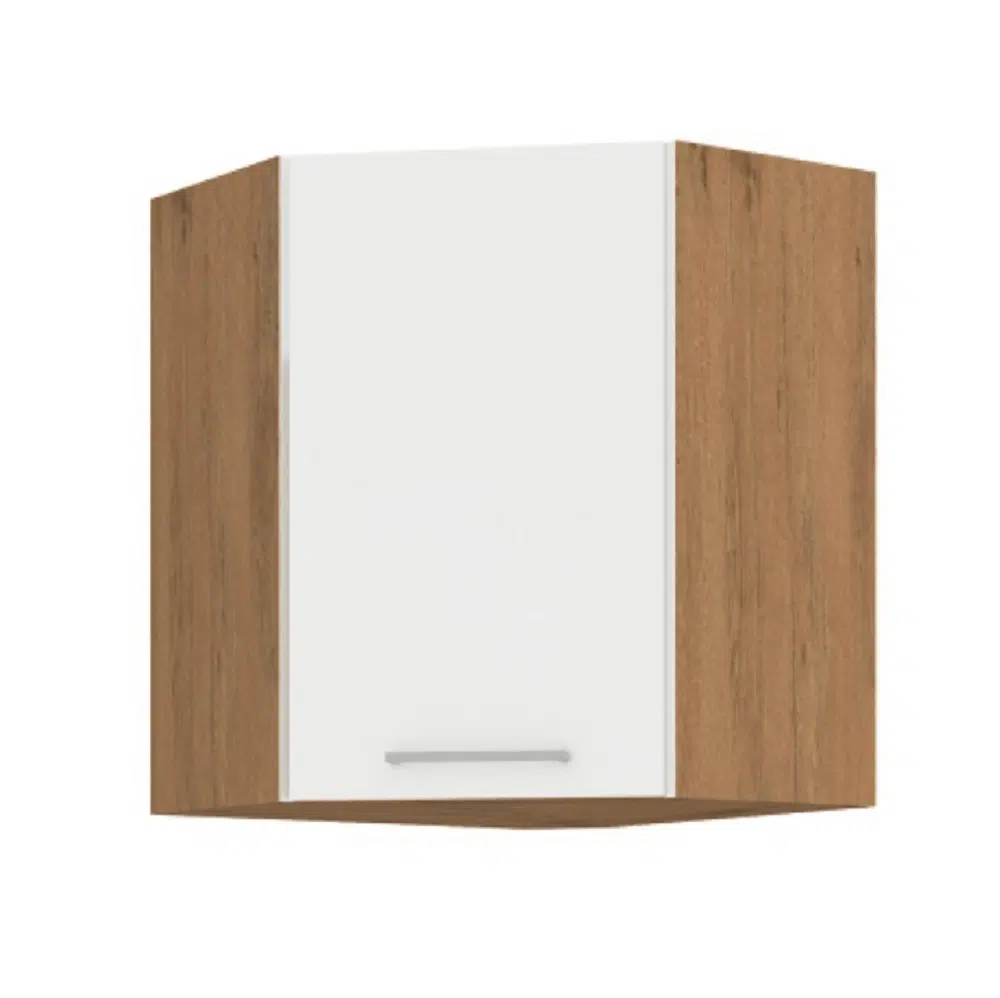 Cabinet superior de colţ, stejar Lancelot/alb extra lucios HG, VEGA 58×58 GN-72 1F