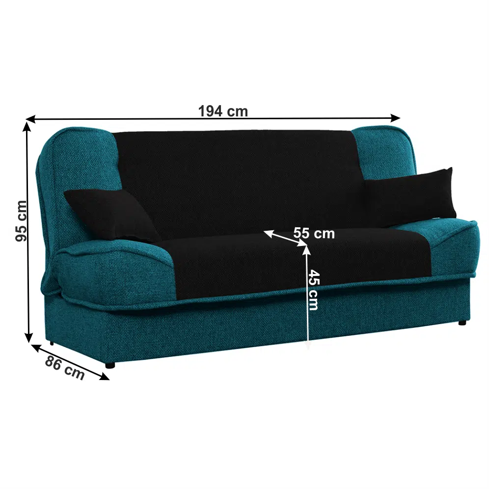 Canapea extensibilă, turcoaz/negru, ASIA NEW