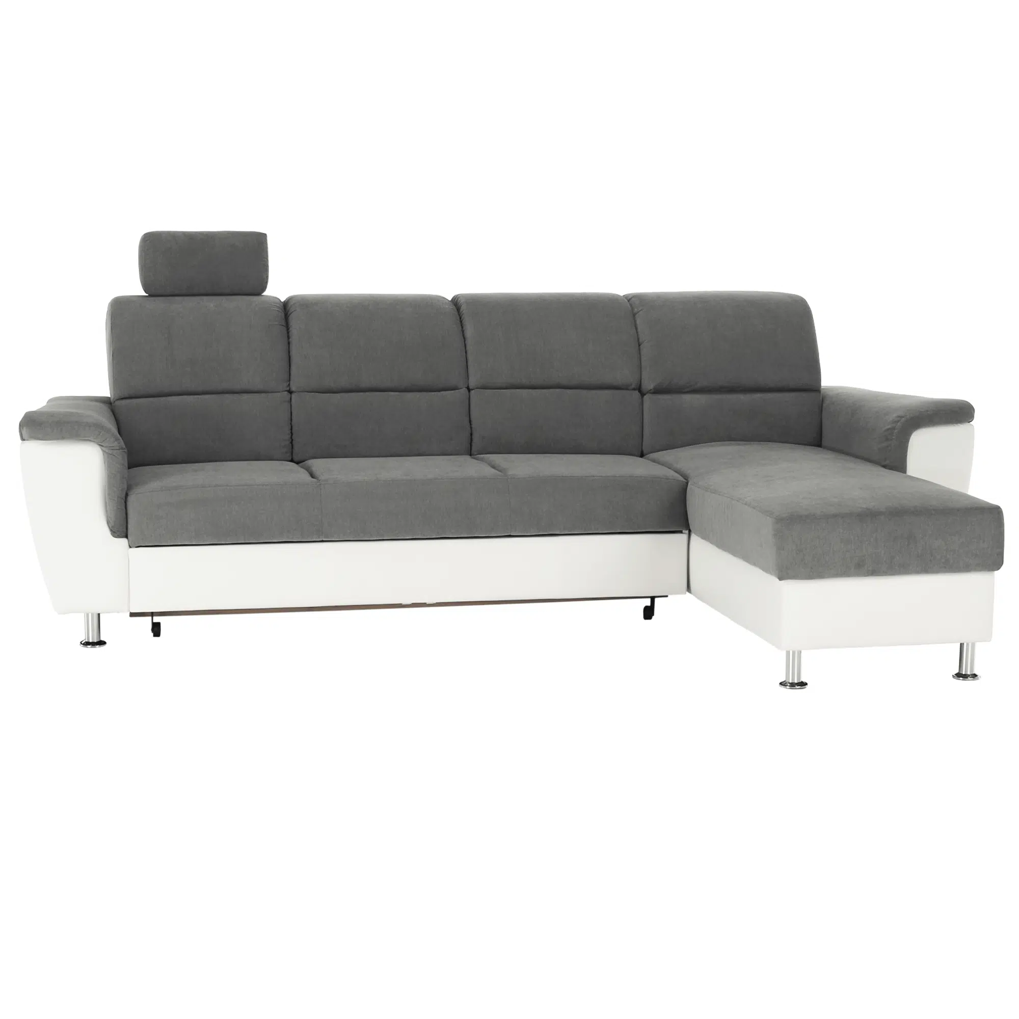 Colţar mic, piele ecologică alb/material textil gri, model dreapta, SANTIAGO COLŢAR MIC