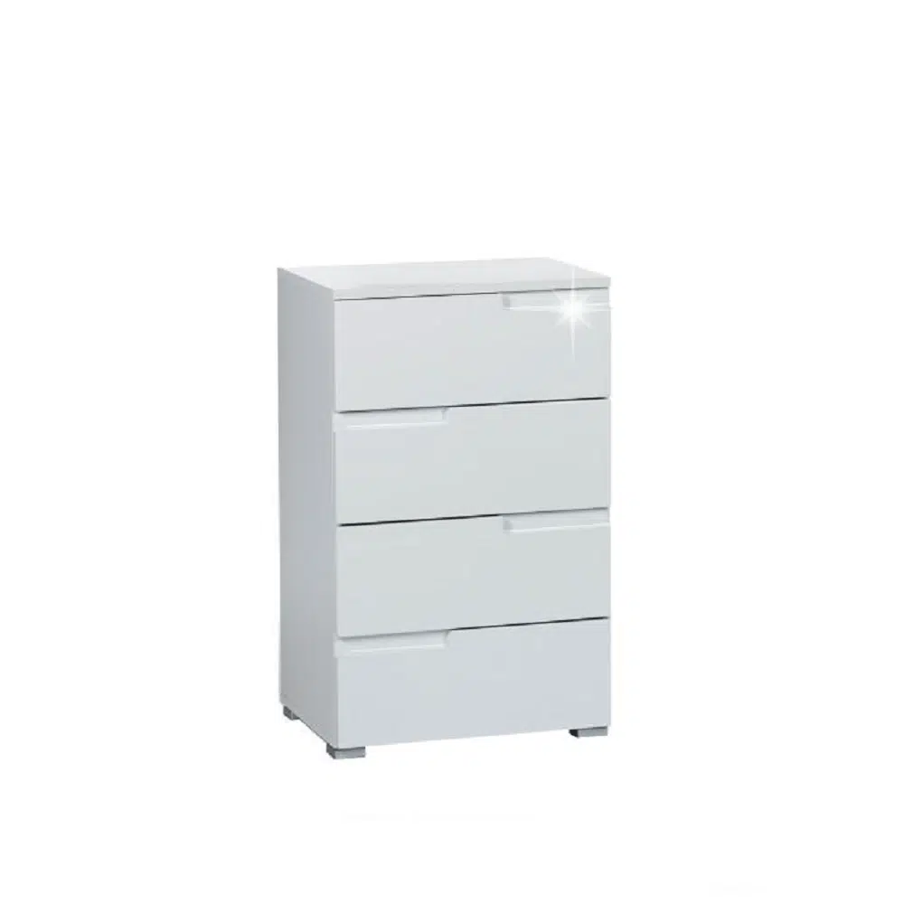Comodă 4 sertare, alb extra lucios HG, SPICE 4