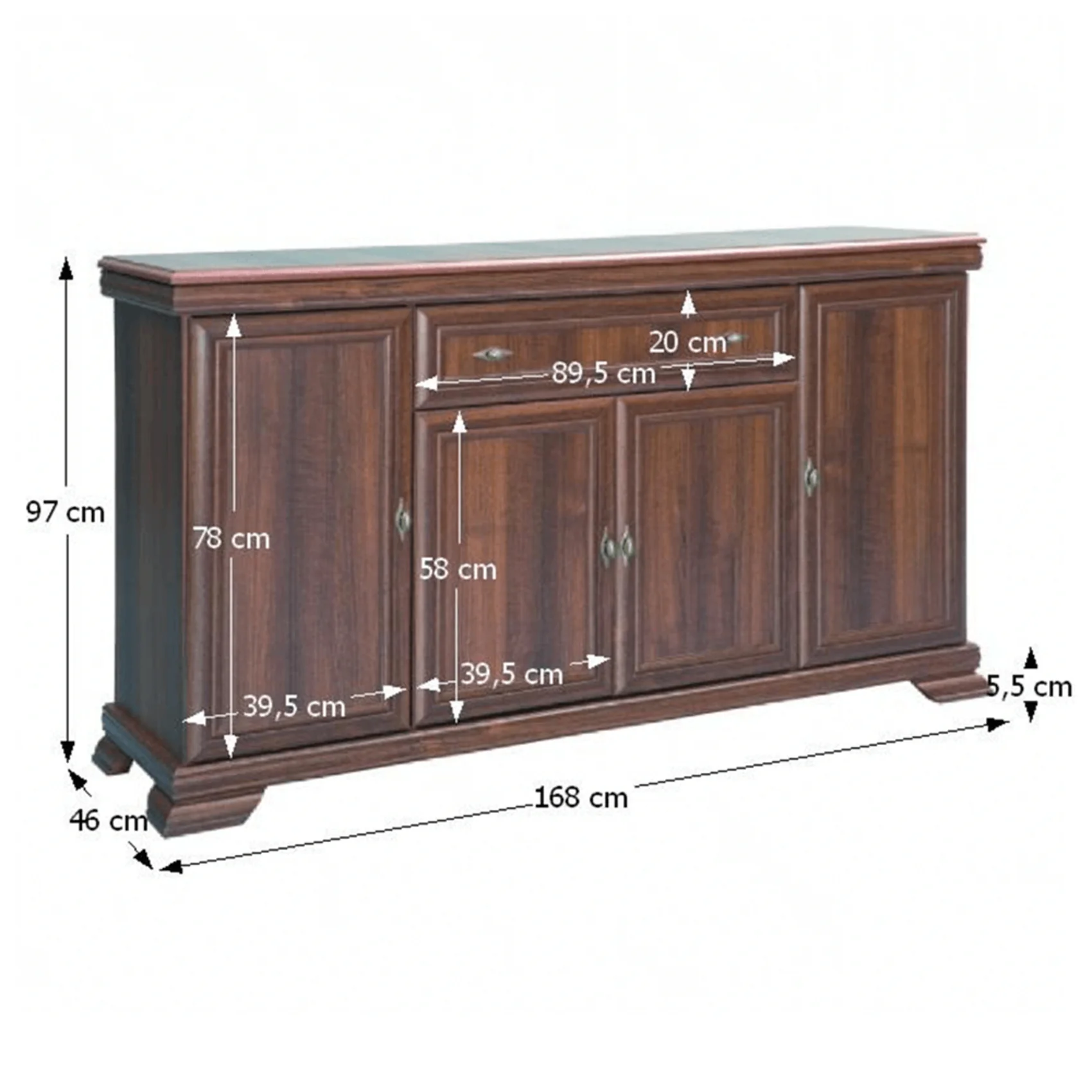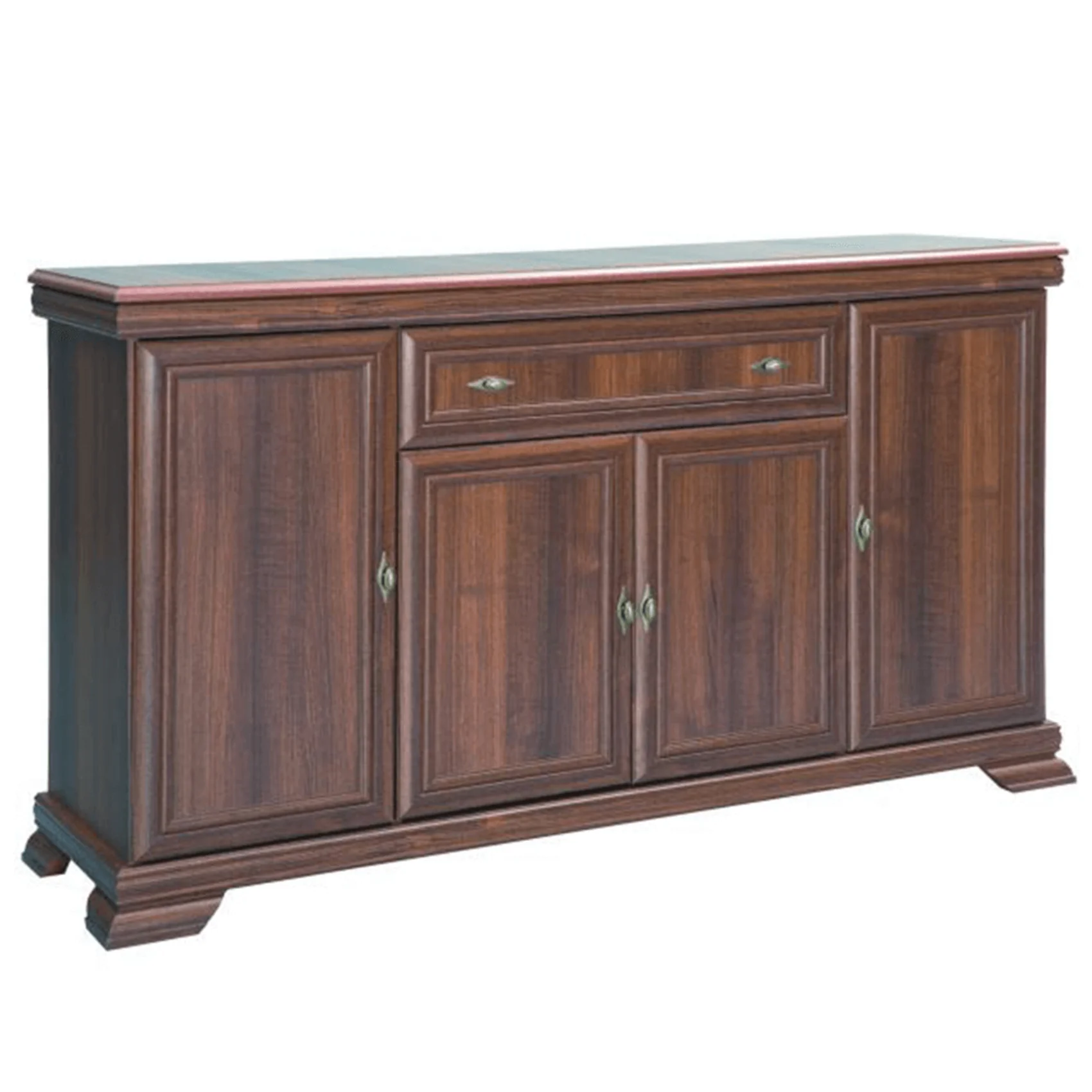 Comoda KORA KK4 este cu patru uşi cu un sertar. Păstrează lucrurile în siguranţă în spatele uşii unde se află un raft. Este fabricată din PAL melaminat de înaltă calitate în finisaj samoa king. Plintele decorative sunt din MDF. Uşile şi sertarele se deschid cu ajutorul mânerelor metalice.