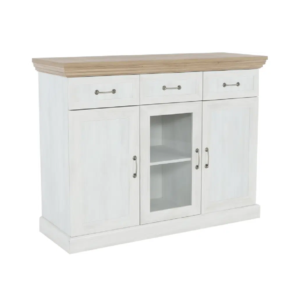 Comodă K1S, cu trei uşi, cu trei sertare, din ansamblul modular elegant Royal în stilul provensal.
