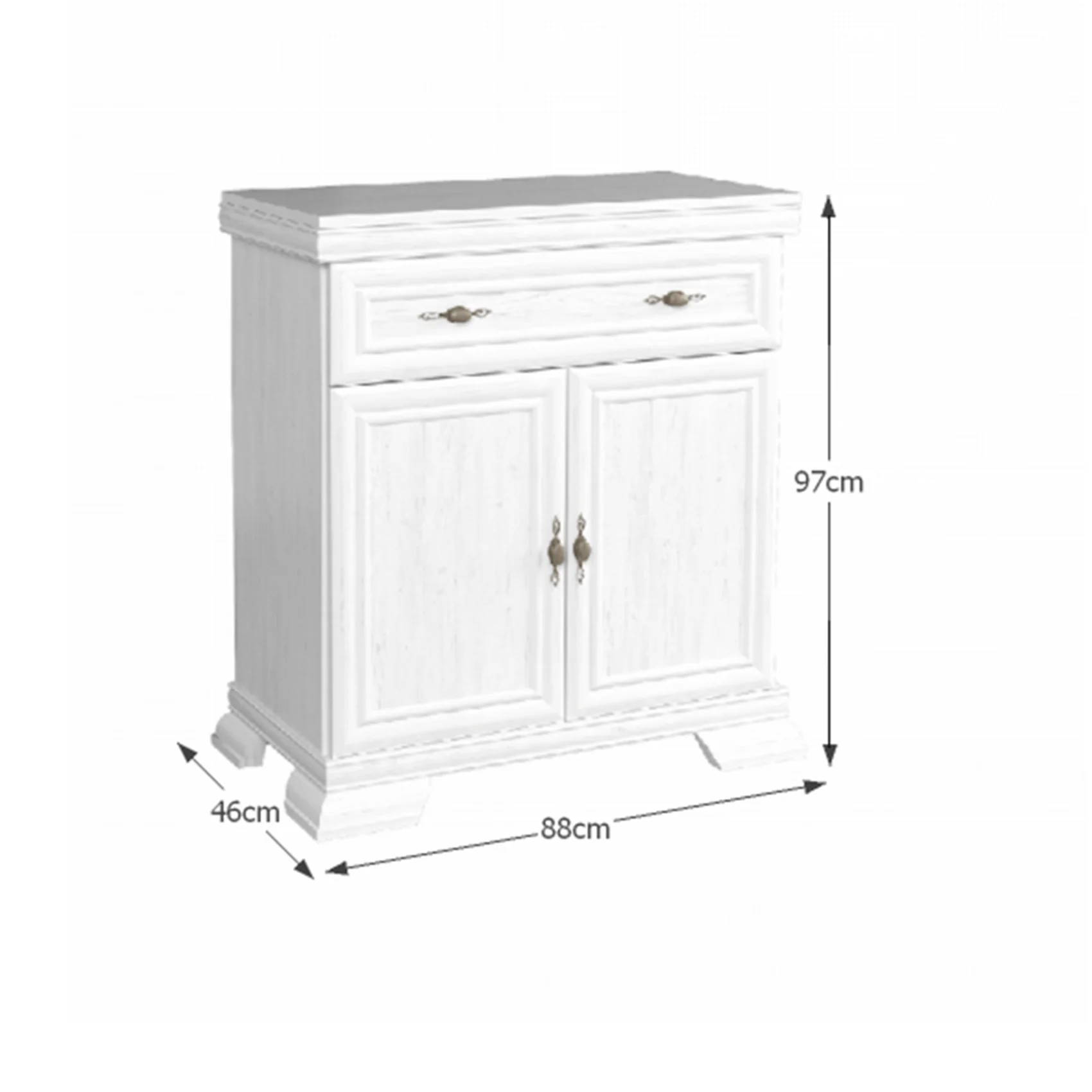 Comoda KK1 KORA este combinată. Spaţiul de depozitare este asigurat de un dulap cu uşi şi un sertar. Dulapul este cu o poliţă împărţit în două zone de depozitare.