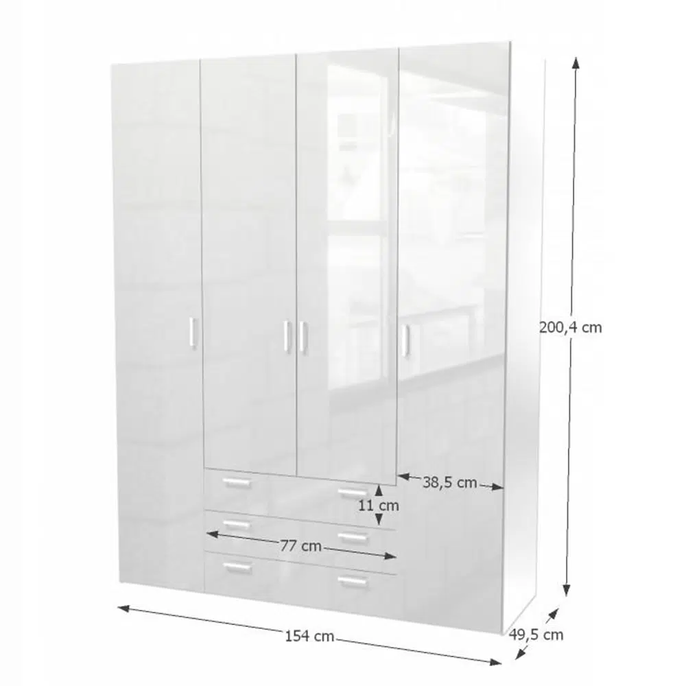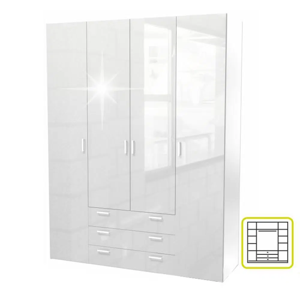 Dulap, 4 uşi, alb extra lucios HG, GWEN 70429