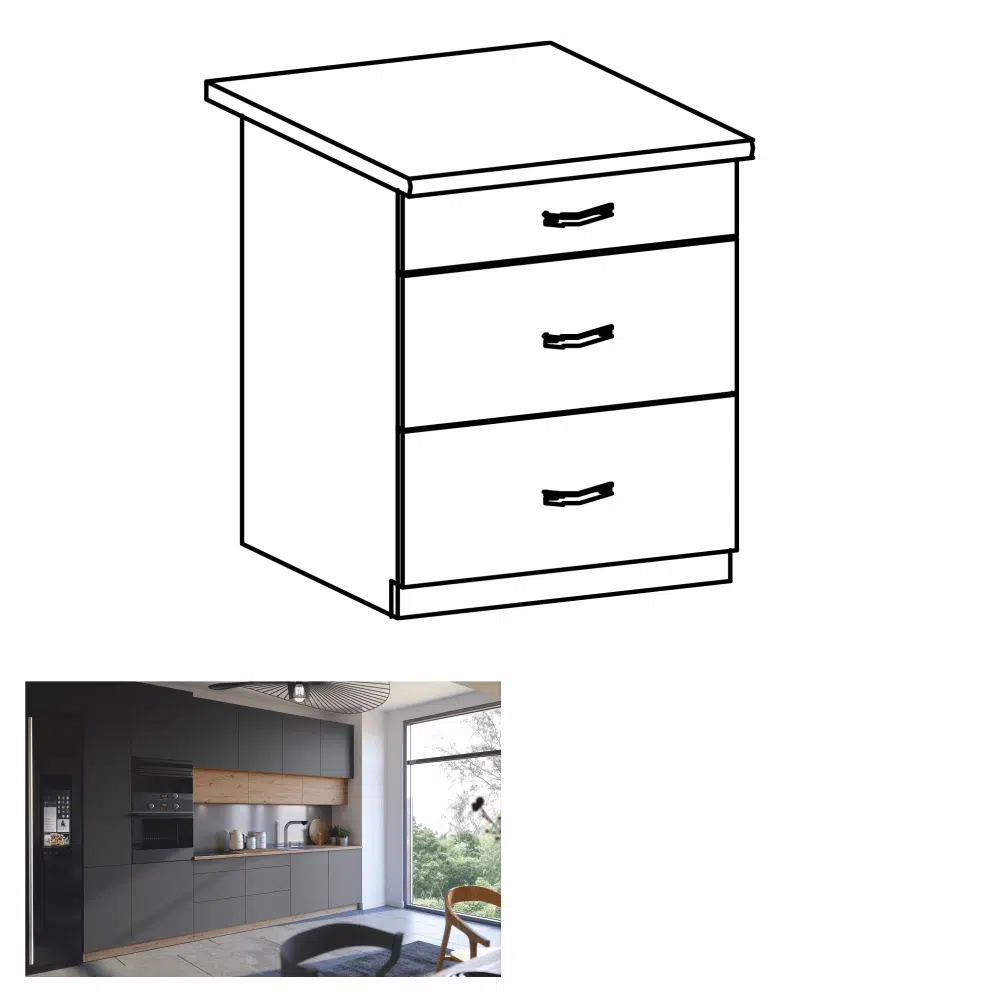 Dulap de jos, stejar artizanal / gri mat, cu mâner, LANGEN D60S3