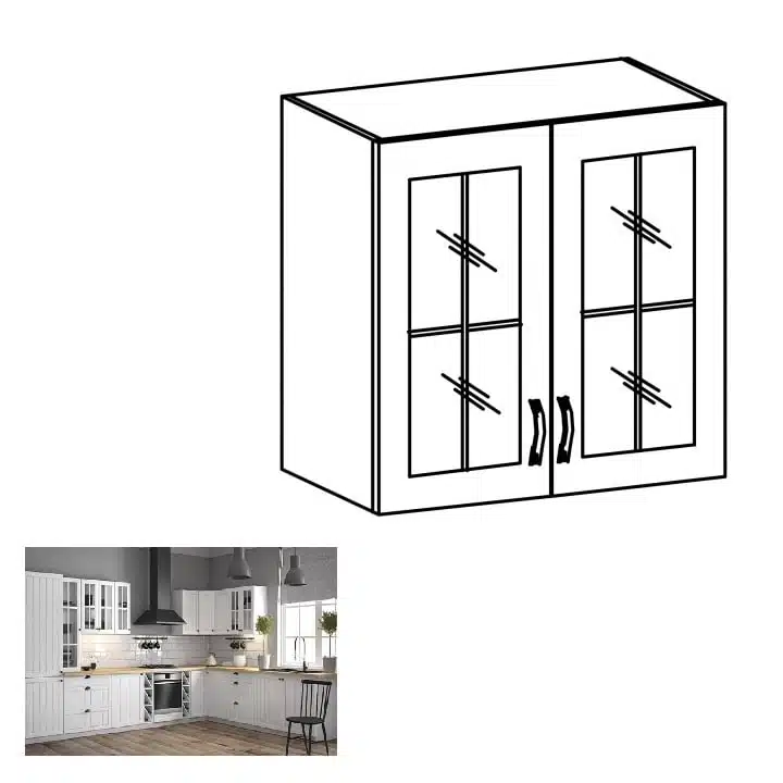 Dulap superior cu două uşi şi cu sticlă G60S, alb/pin Andersen, PROVENCE