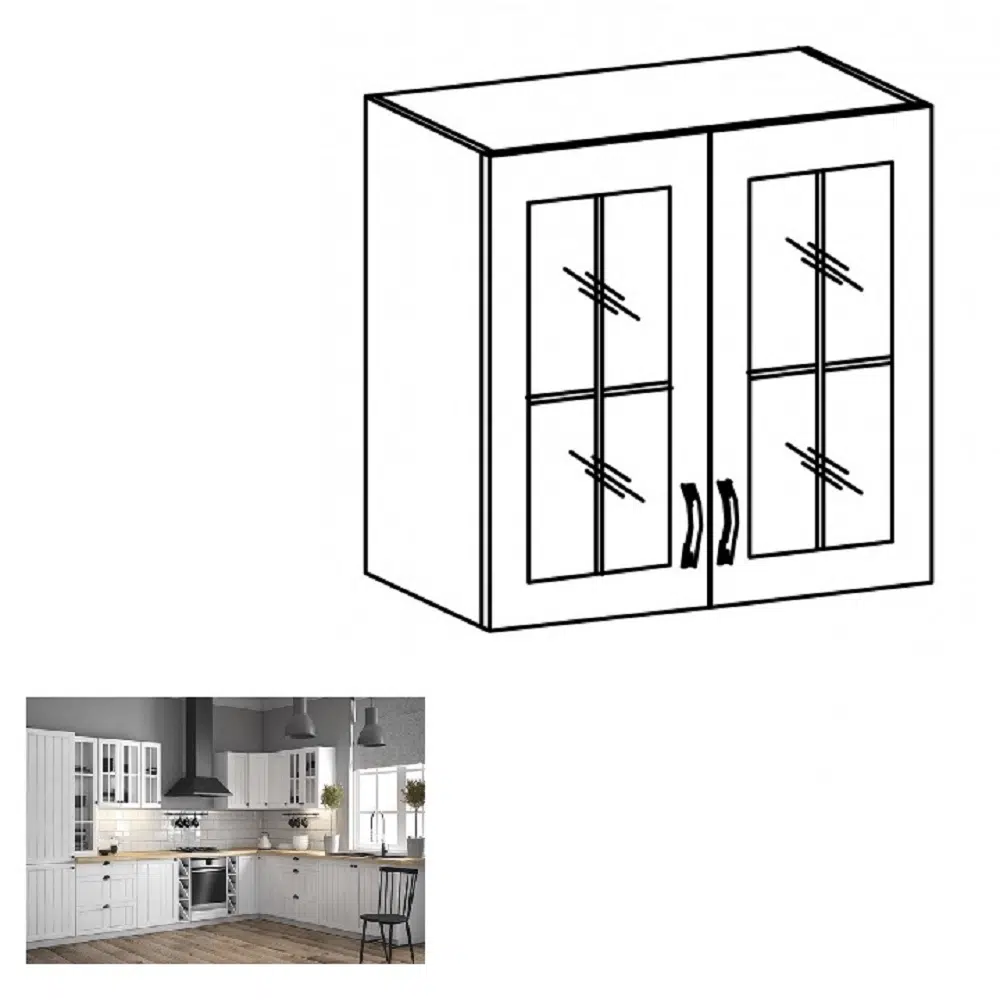 Dulap superior cu două uşi şi cu sticlă G80S, alb/pin Andersen, PROVENCE