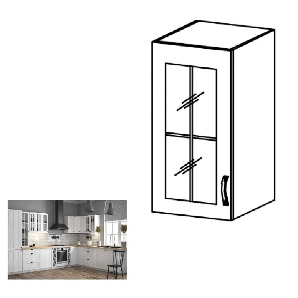 Dulap superior, model stânga, cu uşă cu sticlă şi cu raft din bucătăria PROVENCE Material: DTD laminat/MDF