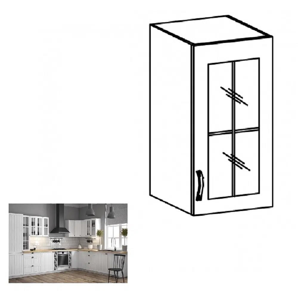 Dulap superior cu sticlă G40S, model dreapta, alb/pin Andersen, PROVENCEDulap superior cu sticlă G40S, model dreapta, alb/pin Andersen, PROVENCE