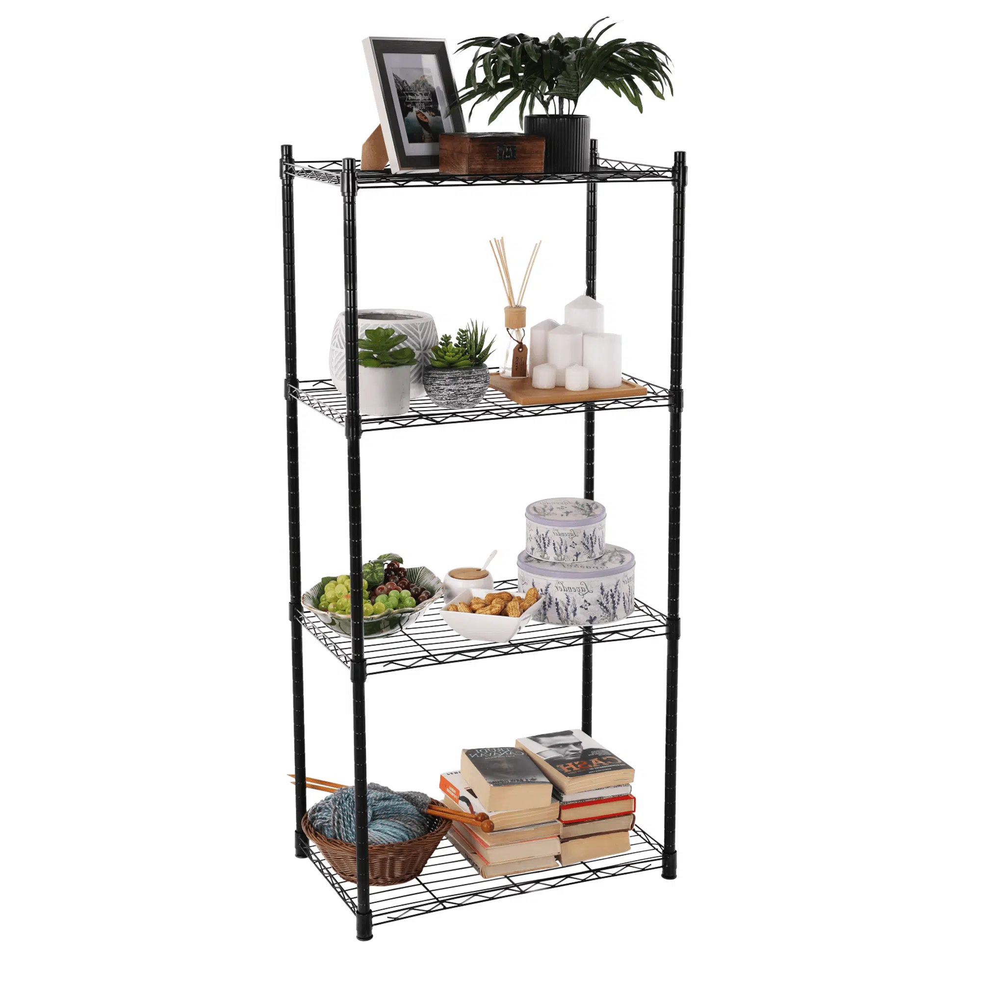 Etajeră cu înălţimea raftului reglabilă, 4 rafturi, negru, NOVEL