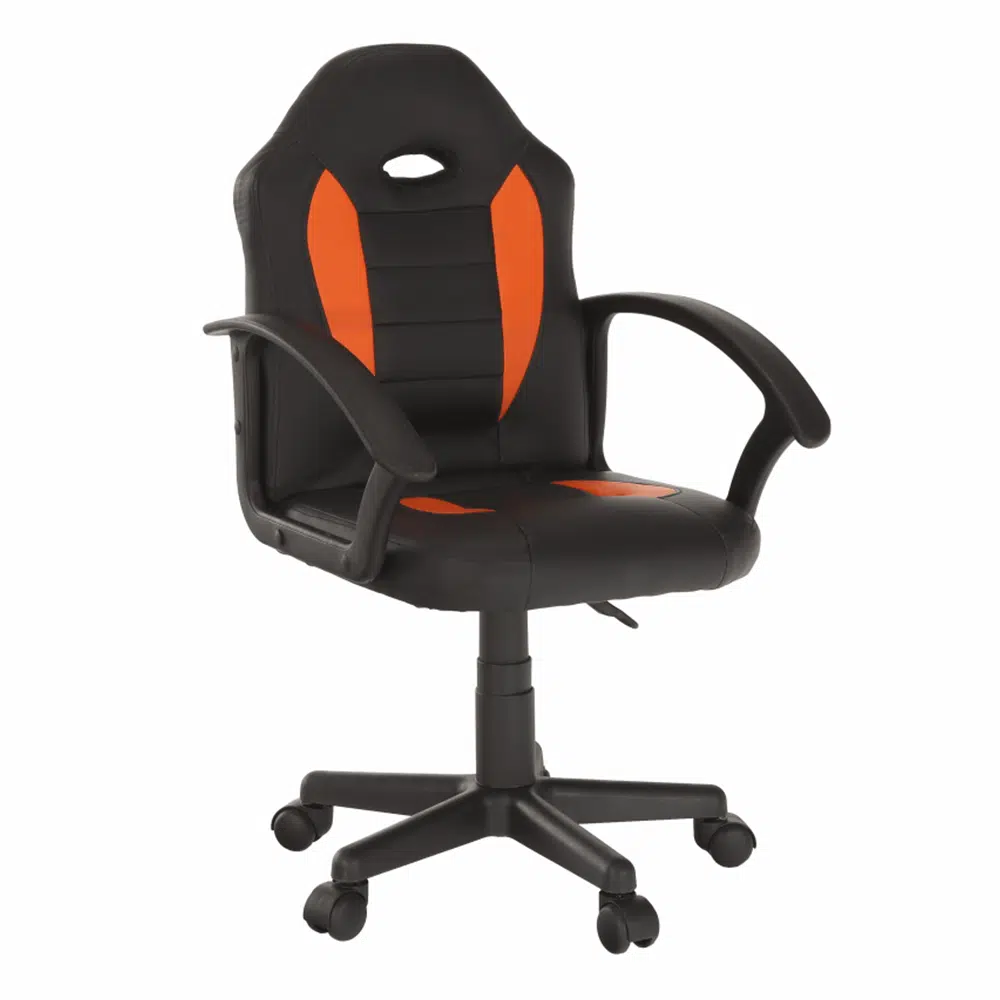 Fotoliu de birou, piele ecologică neagră / portocalie, MADAN NEW