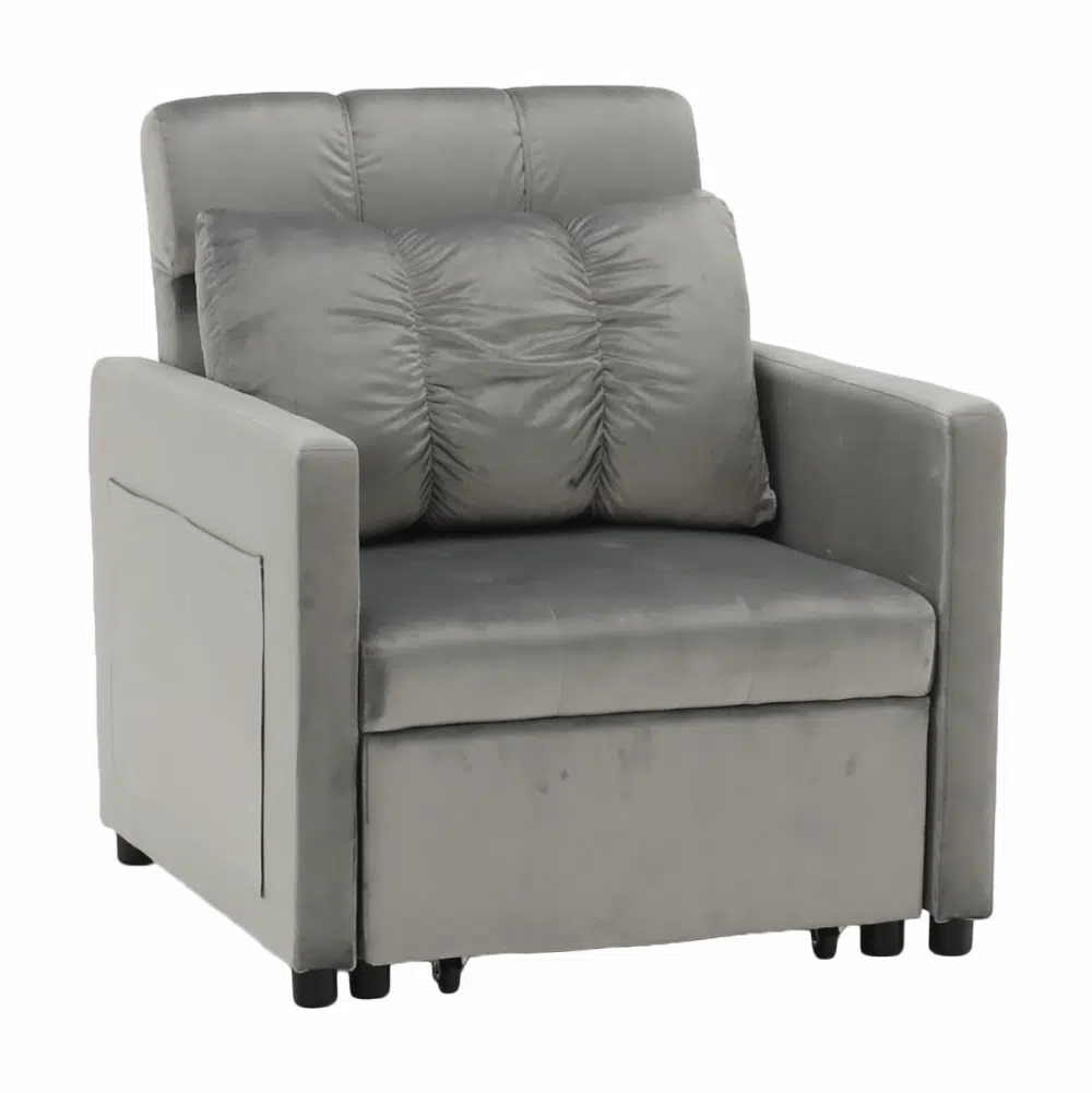 Fotoliu extensibil, catifea Velvet gri deschis, IGRIMFotoliu extensibil, catifea Velvet gri deschis, IGRIM