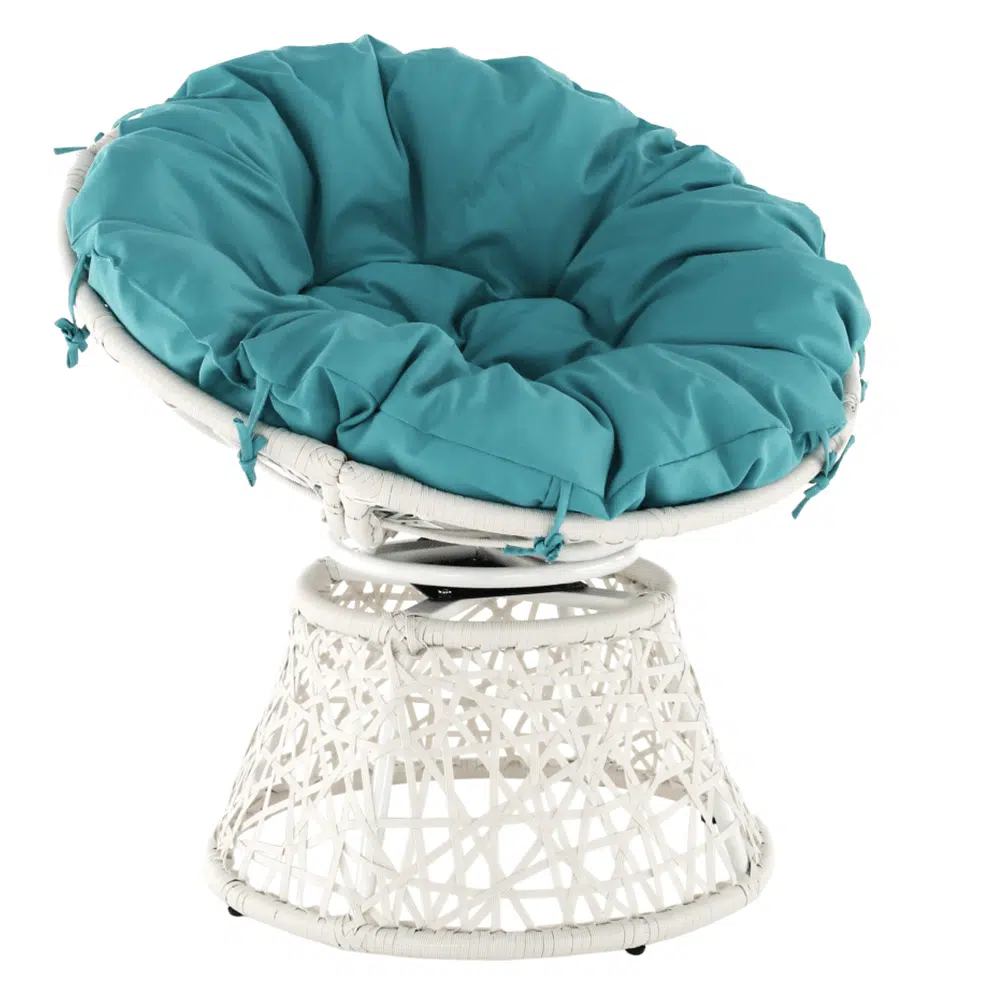 Fotoliu rotativ cu pernă, alb/petrol albastru, TRISS