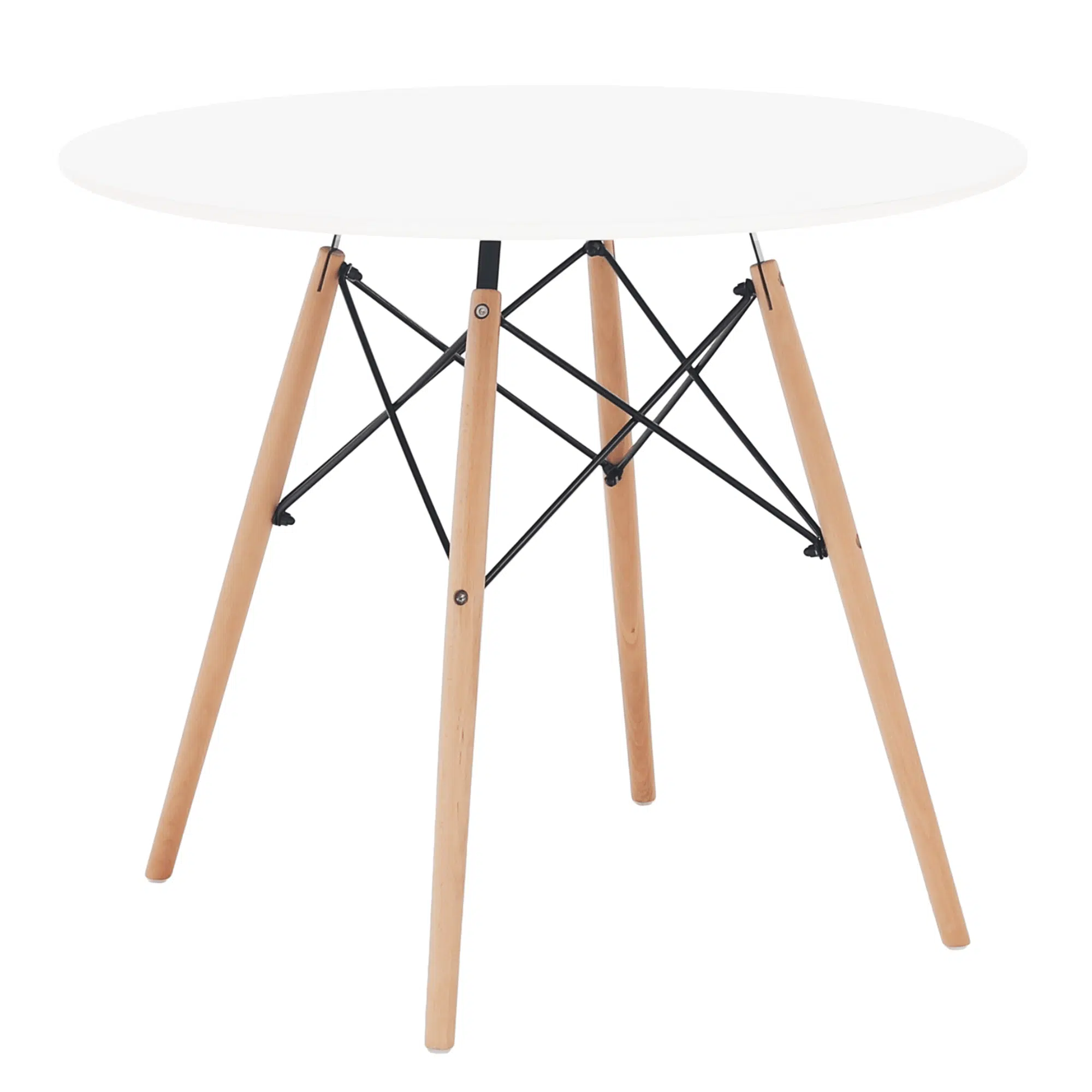 Masa de bucătărie, material: alb MDF blat/picioare din lemn în nuanţa fag, diametru x Î: 90x74cm.