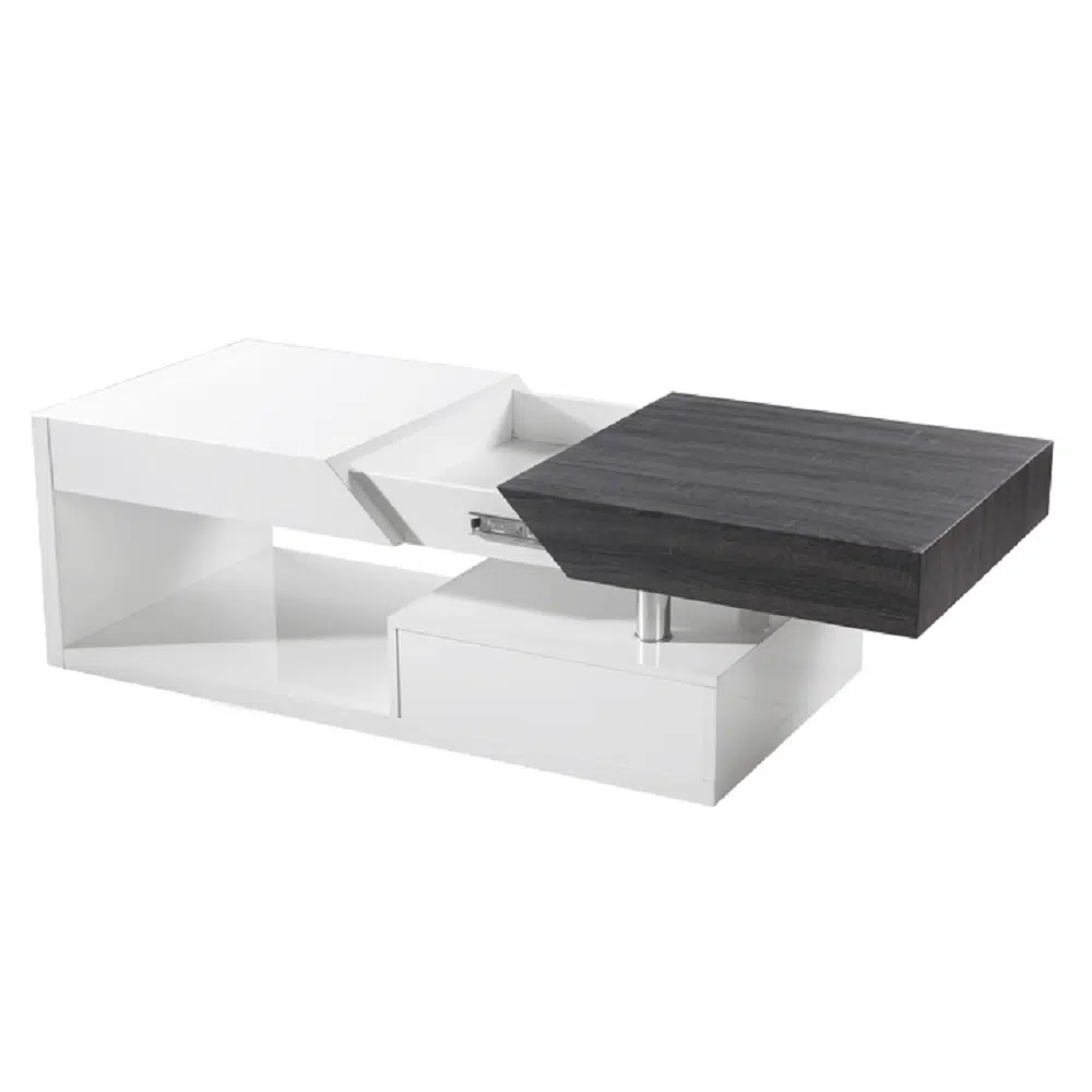 Măsuţă de cafea, alb extra lucios HG/gri cu design din lemn, MELIDAMăsuţă de cafea, alb extra lucios HG/gri cu design din lemn, MELIDA