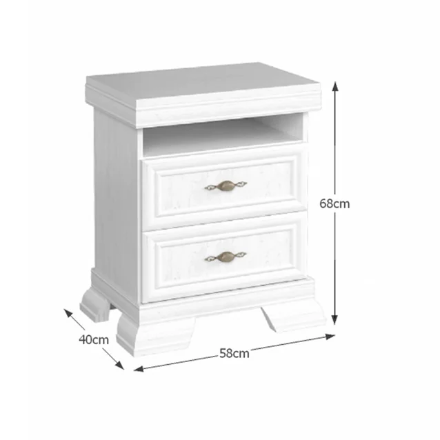 Noptiera KORA KSN are în partea de sus un spaţiu de depozitare, sub el se află două sertare.