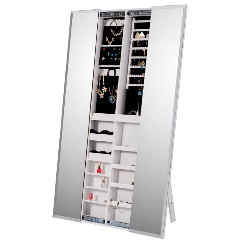 Oglindă cu spaţiu pt. stocare pt. bijuterii, alb, ONEON