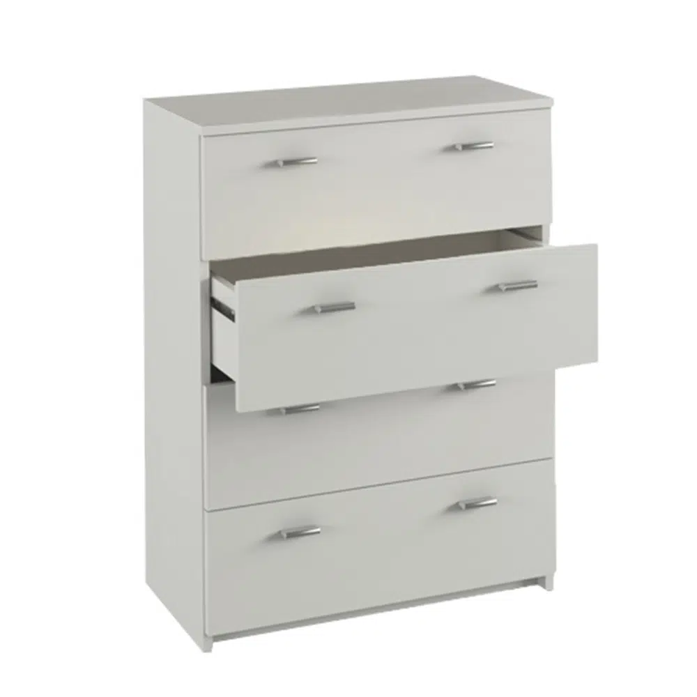 Scrin cu patru sertare. Dimensiuni (LxGxÎ): 64x85x31,8 cm, Material şi culoare: DTD laminat, alb. Produs slovac. Grosimea materialului: 16 mm
