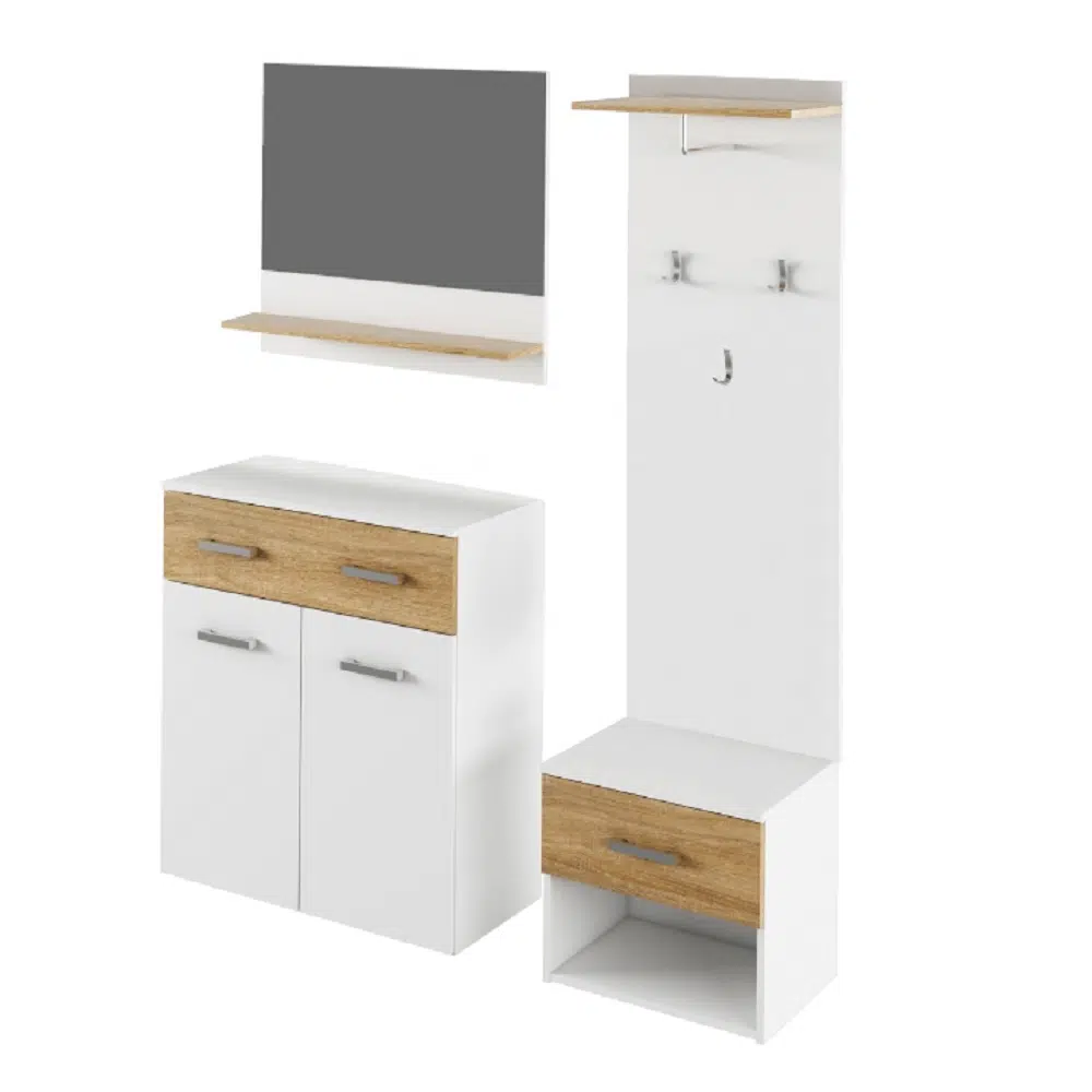 Set mobilă vestibul, alb/stejar sonoma, SIMA