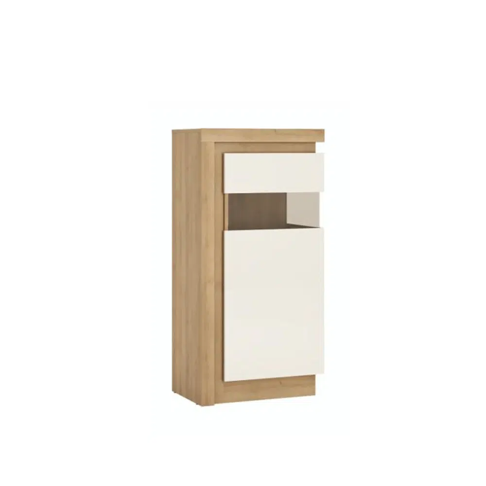 Vitrină LYOV02P din setul modular LEONARDO în culoare stejar riviera/alb cu luciu extra ridicat