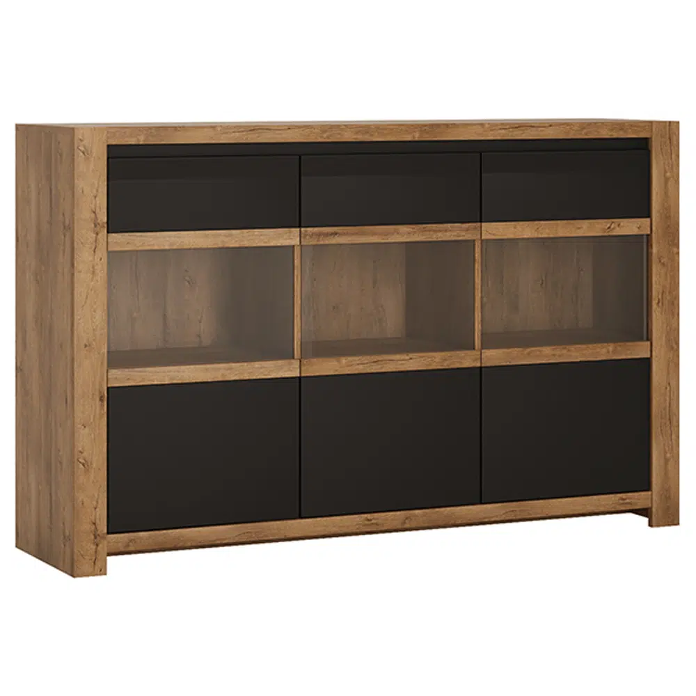 Vitrină, stejar lefkas închis / negru mat, LUCITA HAVV03Vitrină, stejar lefkas închis / negru mat, LUCITA HAVV03